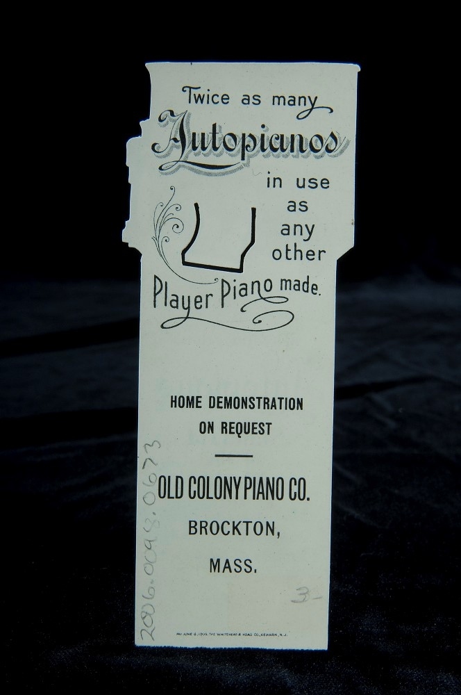 The Autopiano Company was founded in New York City in 1903 and produced player pianos. [1] For those unfamiliar, a player piano is a piano that has been fitted with a pneumatic apparatus, which enables it to be played automatically by means of a rotating, perforated roll that signals to the piano which notes to play. [2] The rolls were sold separately and each one contained different music (similar to a CD or record in today’s age). In addition to its own name brand line of player pianos, the company also produced the Pianista and Symphotone piano lines. [3]