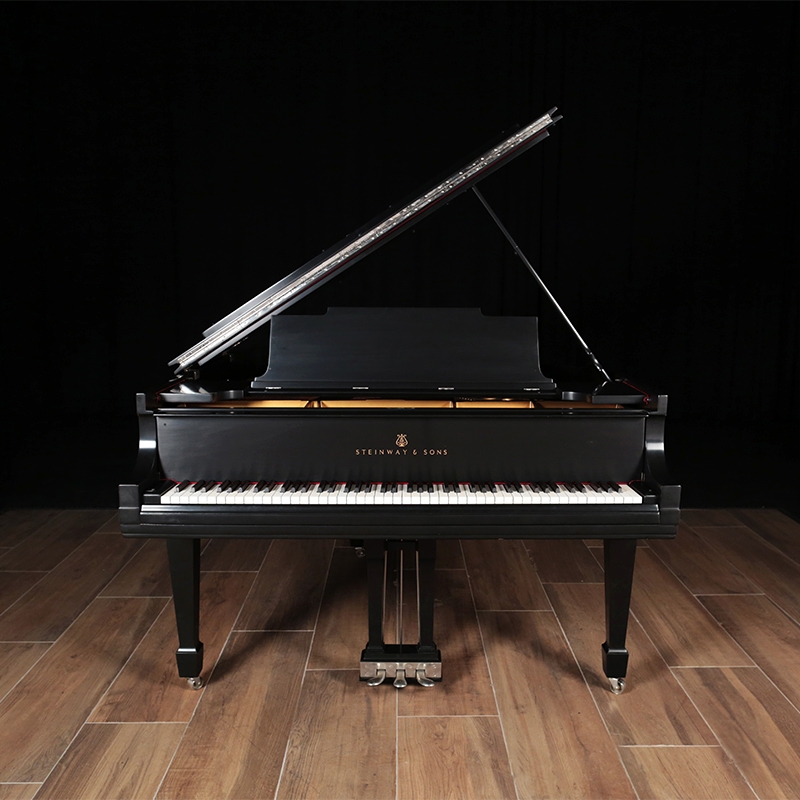 This is a Model M that has previously been restored with new action parts, strings, pinblock, satin ebony finish, and new soundboard and bridges. Includes matching wood top bench.