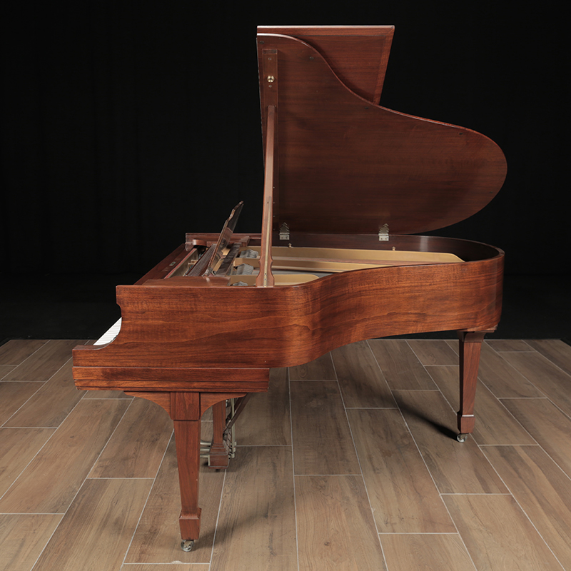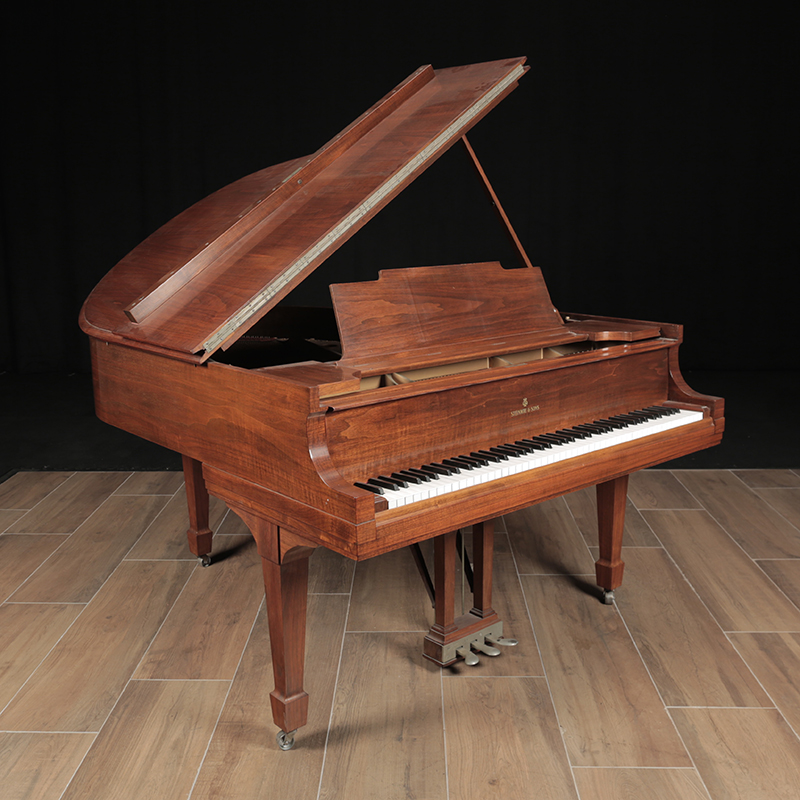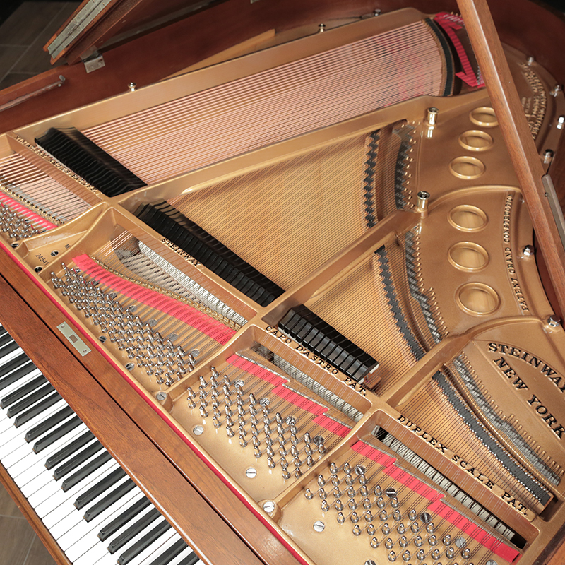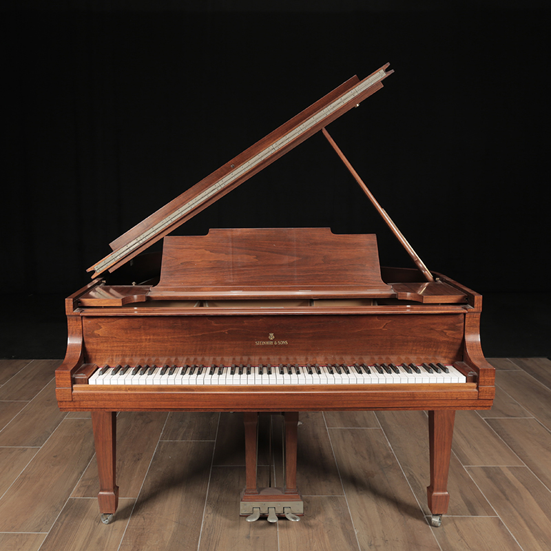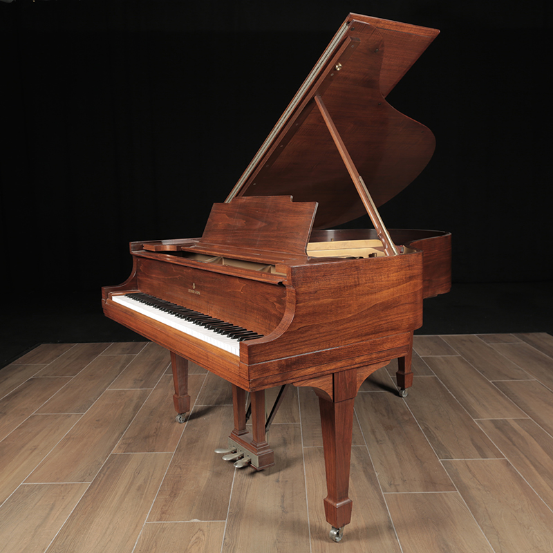 This is a classic Steinway Model M in a traditional walnut case. It has just been mechanically restored using authentic Steinway parts. The current walnut finish on the piano can be refinishing in a color of your choice for an additional cost. Comes with a matching artist bench.