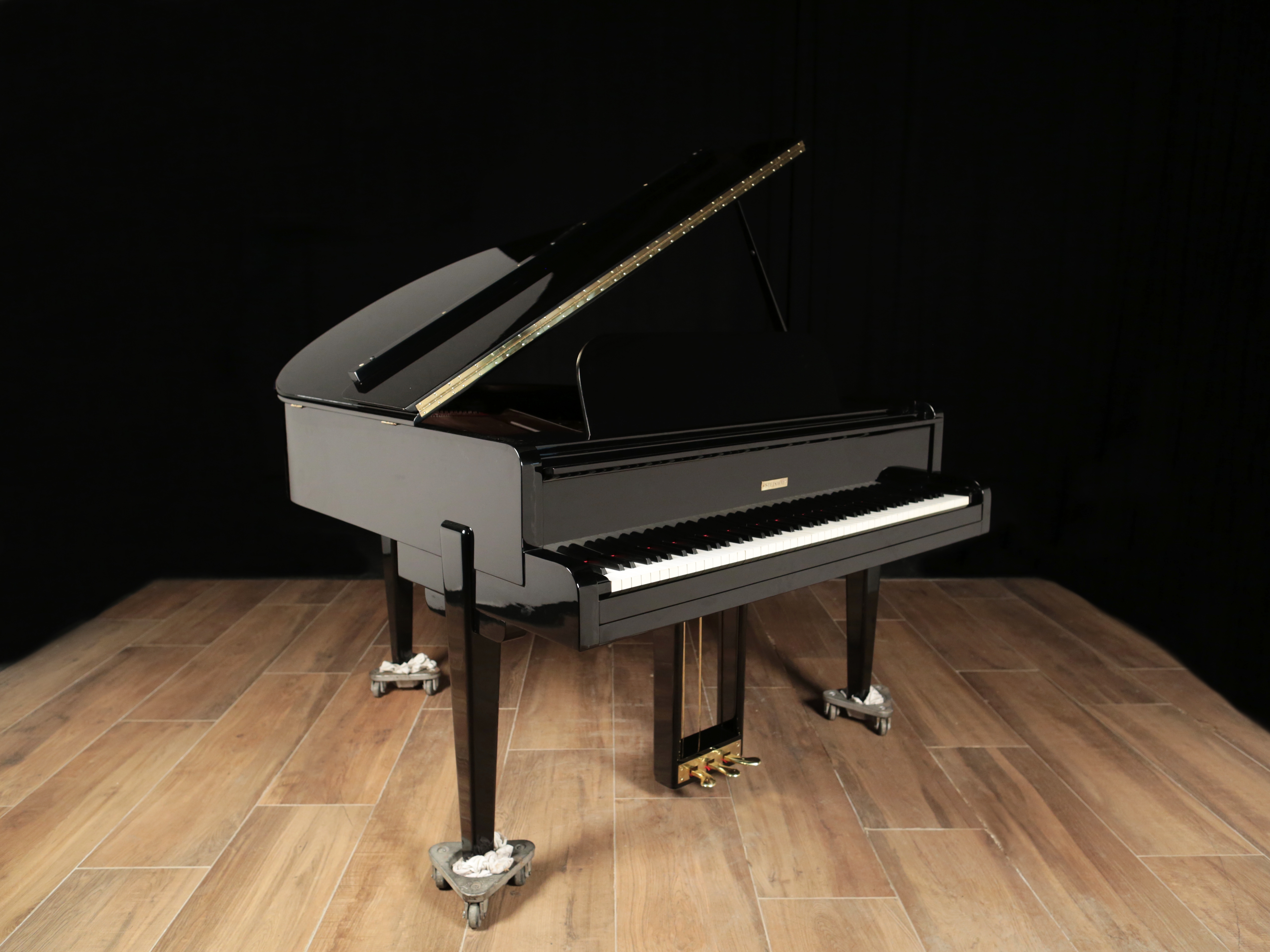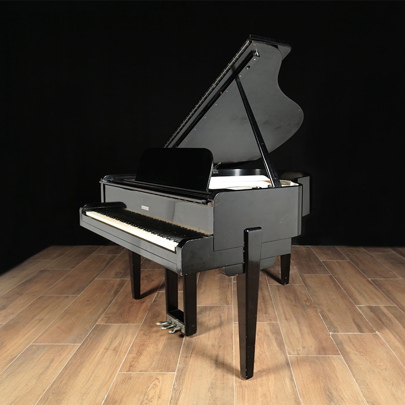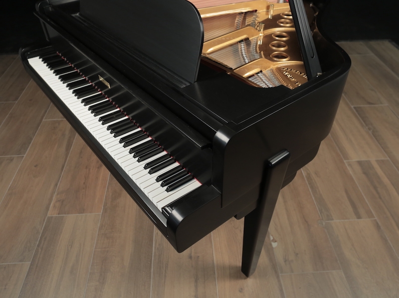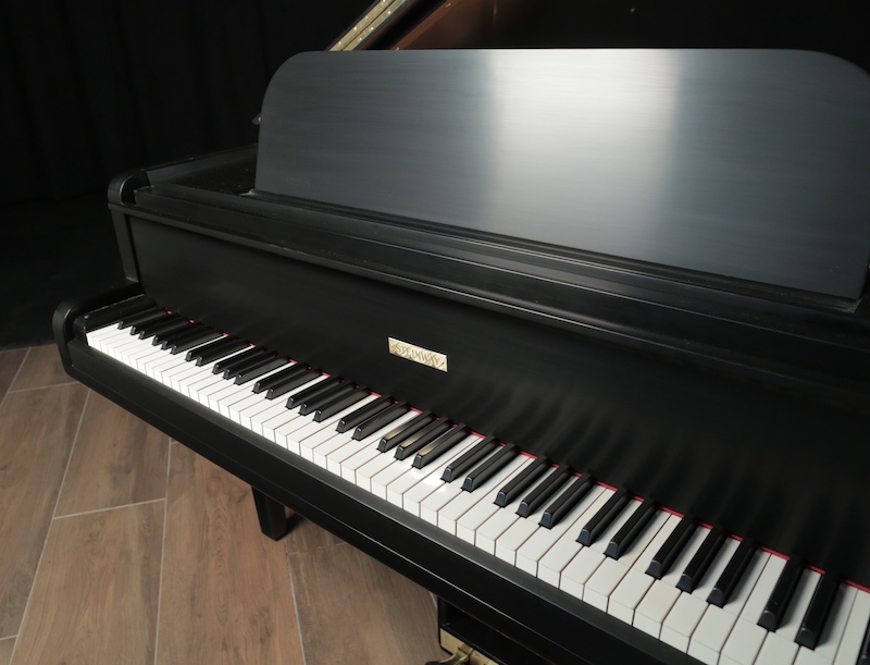 This rare limited production Art Deco Steinway Model S will be rebuilt with all Steinway parts and can be refinished in an ebony Satin or High Gloss (recent examples in the photos). This piano has nickel plated hardware and silver harp (originally built that way).