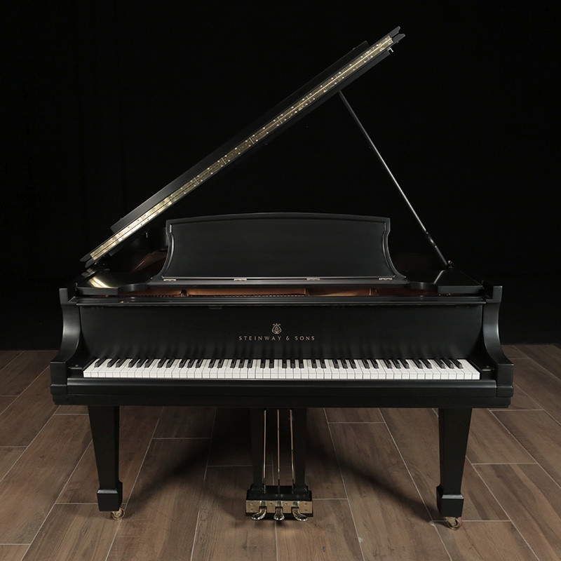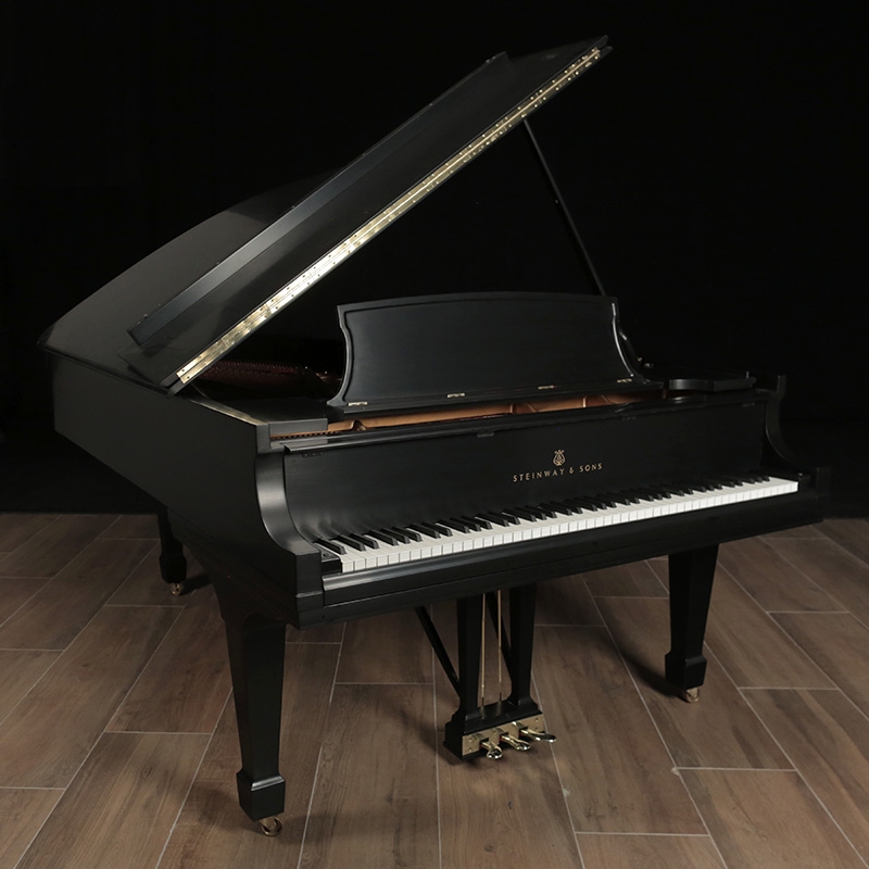 This Steinway Model B has a traditional style case. It will be fully restored using authentic Steinway parts and the case will be refinished in a stain ebony finish. Includes a matching artist bench. Photos shown of a different piano and shows how it will look after restoration.