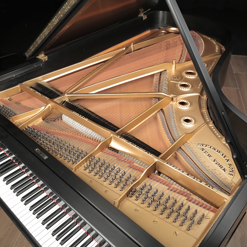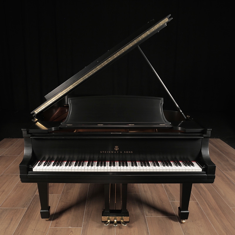 This Steinway B is encased with a classic satin ebony veneer. It will be fully rebuilt using authentic Steinway parts and refinished. Includes a matching bench.