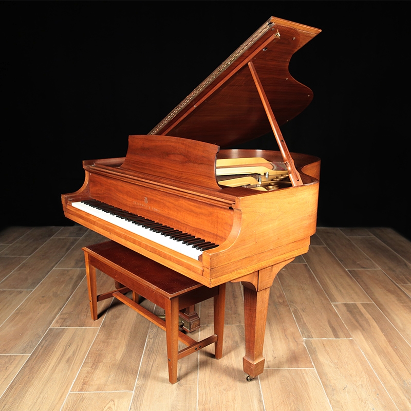 This Steinway Model M is in a classic traditional style case. It will be restored using authentic Steinway parts and the case will be refinished to a stain of your choice or in a satin ebony finish. The soundboard is in excellent condition. Includes a matching wood top bench.