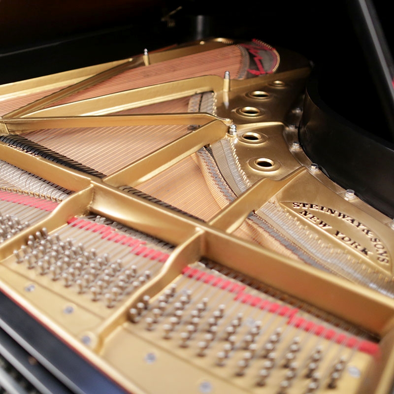 This Model B has an excellent original soundboard and has the original factory-installed pinblock. The original Teflon action was replaced with all genuine Steinway parts. Contact us on how we can adjust the tone to your liking. Includes a matching wood top bench.  Videos of this piano being played by a concert pianist here - Videos