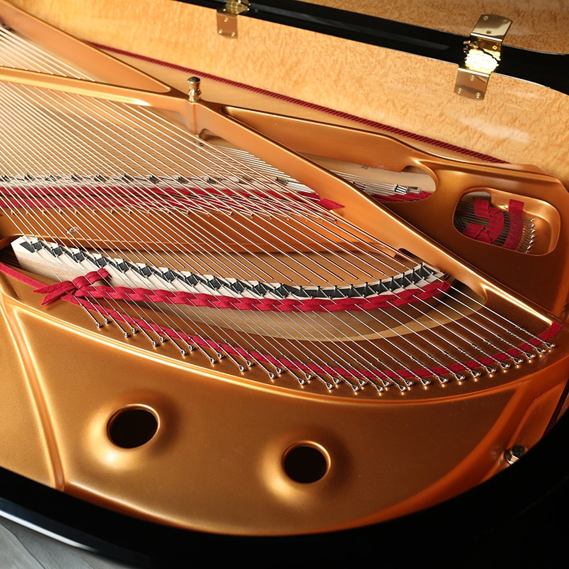 We recommend that this soundboard be replaced with a hand-crafted spruce soundboard.