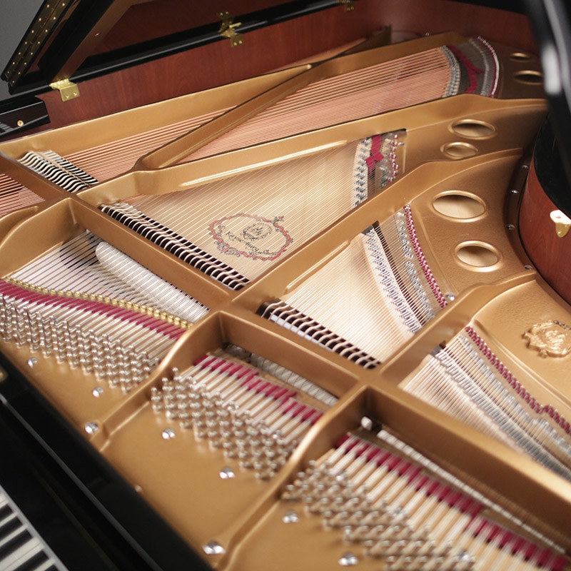 We recommend that this soundboard be replaced with a hand-crafted spruce soundboard.